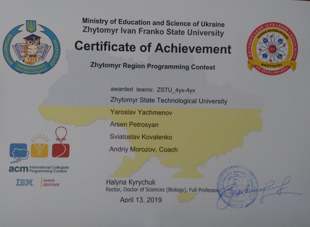 13 квітня 2019 року на базі Житомирського державного університету імені Івана Франка проходив I етап Всеукраїнської студентської (командної) олімпіади з програмування. Учасниками були близько 100…
